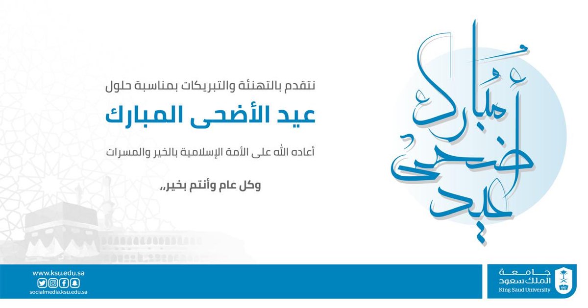 جامعة الملك سعود Sur Twitter جامعة الملك سعود ترفع التهنئة لخادم الحرمين الشريفين وولي عهده الأمين ولمنسوبيها ومنسوباتها الكرام والشعب السعودي كافة بمناسبة حلول عيد الأضحى المبارك أعاده الله علينا وعلى