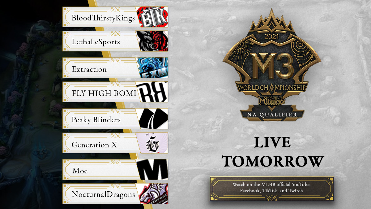 Mobile Legends Bang Bang A Twitter The Wait Is Almost Over Tune In Tomorrow For The Mobile Legends Bang Bang World Championship Na Qualifier Starting At 11 Am Pt At Https T Co 42emarzci6